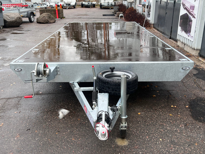 Vankka rakenteinen Atlas traileri soveltuu niin tavaroiden kuin ajoneuvojenkin kuljetukseen.