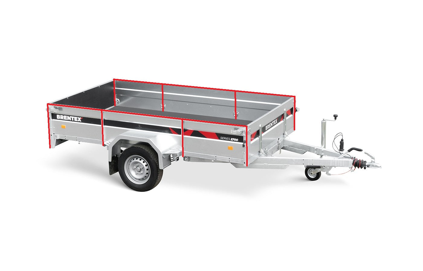 Laidoissa on vahvat tukipilarit, jotka näkyvät kuvassa (2 Kuva) punaisina viivoina. Tukipilarit on yhdistetty runkoon ja uppokuumasinkitty yhdessä rungon kanssa, mikä tekee laidoista erittäin kestävät ja pitkäikäiset. Etu- ja takalaidat ovat poistettavissa, mikä helpottaa pidempien kuormien kuljettamista ja kuorman käsittelyä.