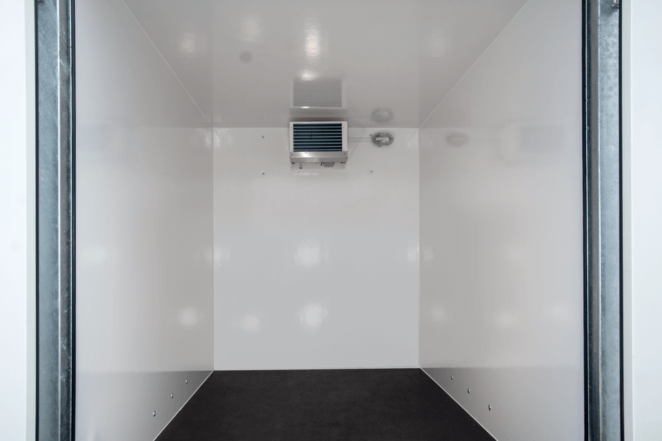 Sandwich-seinärakenne (kuvissa esitetty), eristetty lattia sekä sisäänrakennettu kylmäyksikkö, jonka teho on mallista riippuen 1600 W tai 2000 W, pitävät lämpötilan tasaisena.
