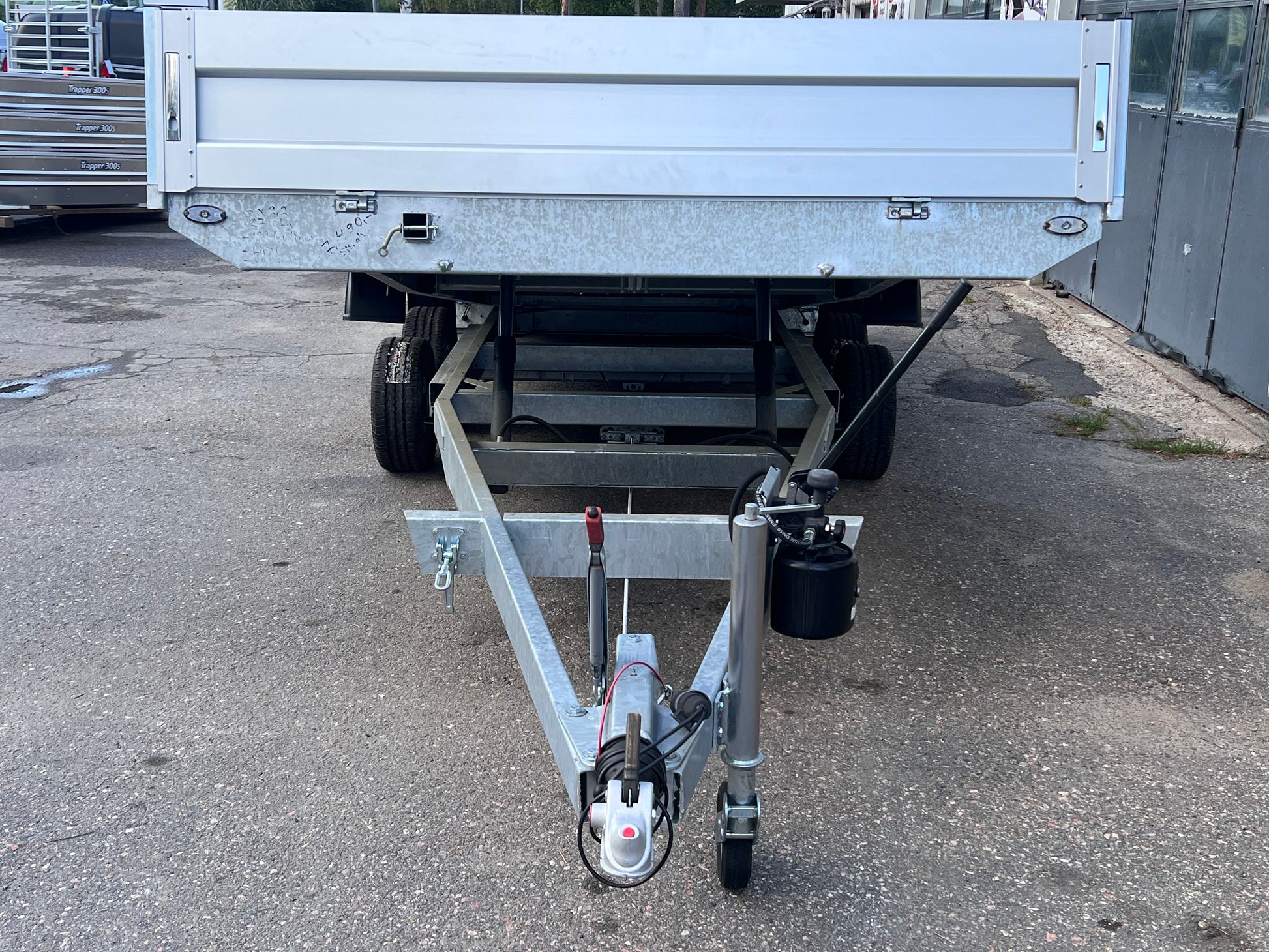 Auto ja tavarankuljetustraileri on hydraulisesti kippaava, kaksiakselinen lavettikärry irroitettavilla alumiinilaidoilla 40cm.