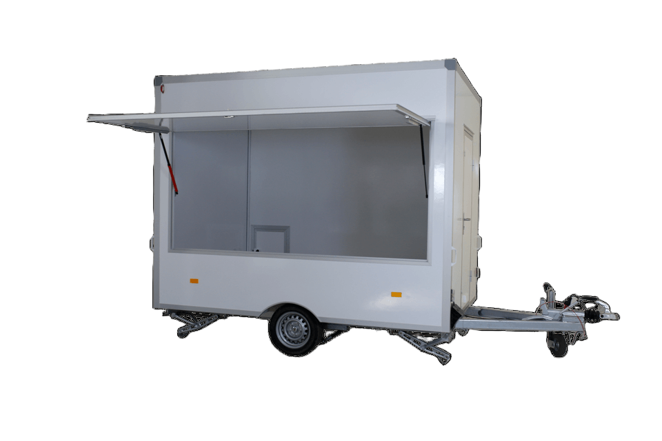 Tarjoamme yksi- ja kaksiakselisia perävaunuja, joissa on yksi tai kaksi myyntiluukkua, varustettuna tiskillä ja hyllyillä tai tyhjinä – asiakkaan tarpeiden mukaan.