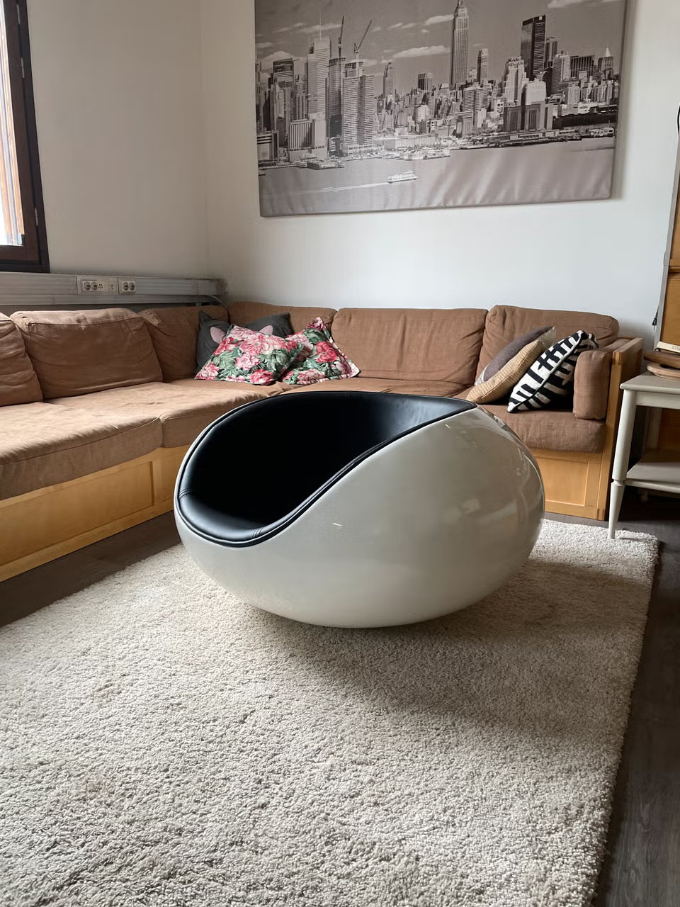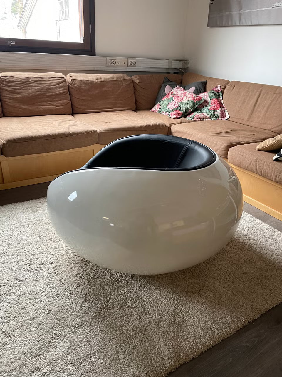 Tyylikäs ja moderni valkoinen design tyylinen-tuoli, jossa kiiltävä ulkopinta ja musta keinonahkaverhoiltu istuinosa. Futuristinen muotoilu tekee tuolista täydellisen sisustuksen katseenvangitsijan. Sen ergonominen muoto tarjoaa sekä mukavuutta että ylellisyyttä. Huomio: Tuolin pohjassa on pieni naarmu, joka on syntynyt sen ollessa hyllysäilytyksessä. Tämä ei kuitenkaan vaikuta sen käytettävyyteen tai näkyvään ulkoasuun. Täydellinen valinta tyylitietoiseen kotiin!